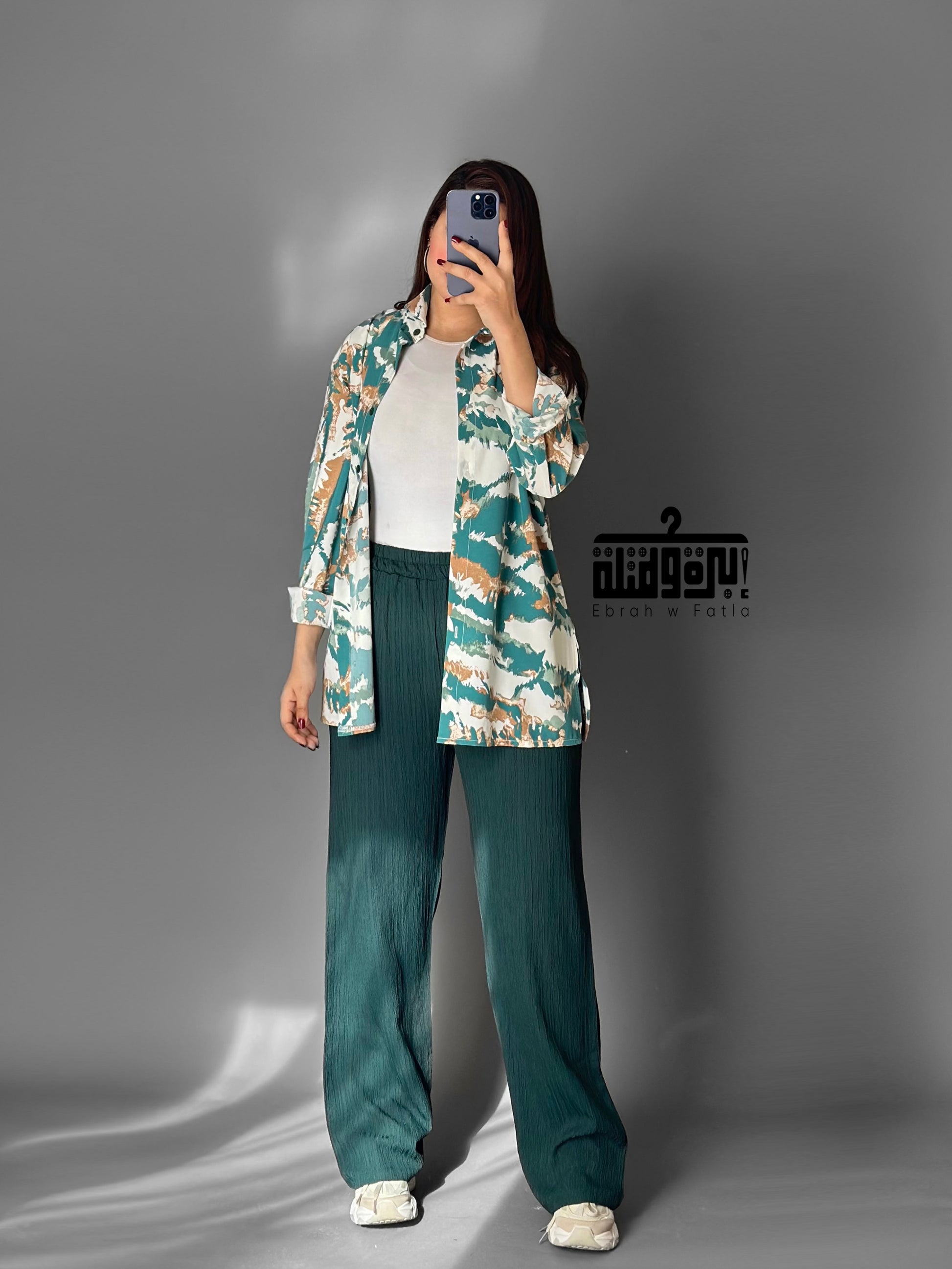 Stay effortlessly stylish with this trendy co-ord set! 💚✨ Featuring a flowy printed shirt and comfy pleated wide-leg pants, perfect for any casual outing. The shirt is available for separate purchase! 🛍️🔥